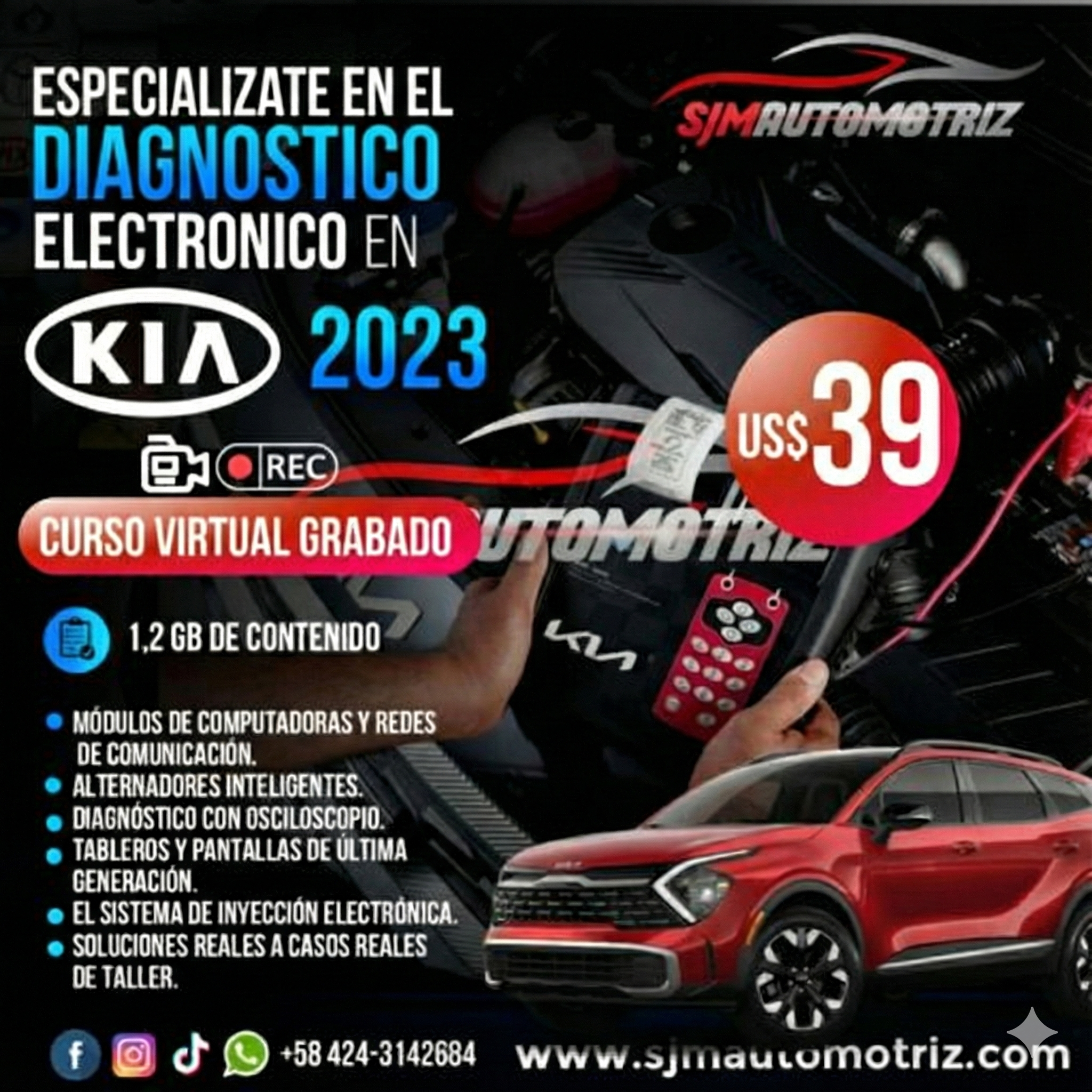 Desde módulos de computadoras hasta soluciones prácticas en talleres reales, este curso te guiará hacia la maestría en diagnóstico electrónico para vehículos Kia 2023.