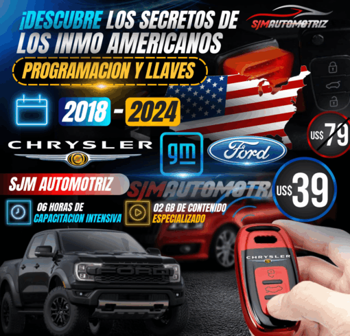 ¿Quieres dominar la programación de inmovilizadores y llaves en los modelos más recientes de Chrysler, GM y Ford? 🛠️ ¡Este curso es tu oportunidad para elevar tus habilidades automotrices al siguiente nivel! Aprende todo lo que necesitas para ser un experto en programación de sistemas de inmovilización en 6 horas de capacitación intensiva. 🎯